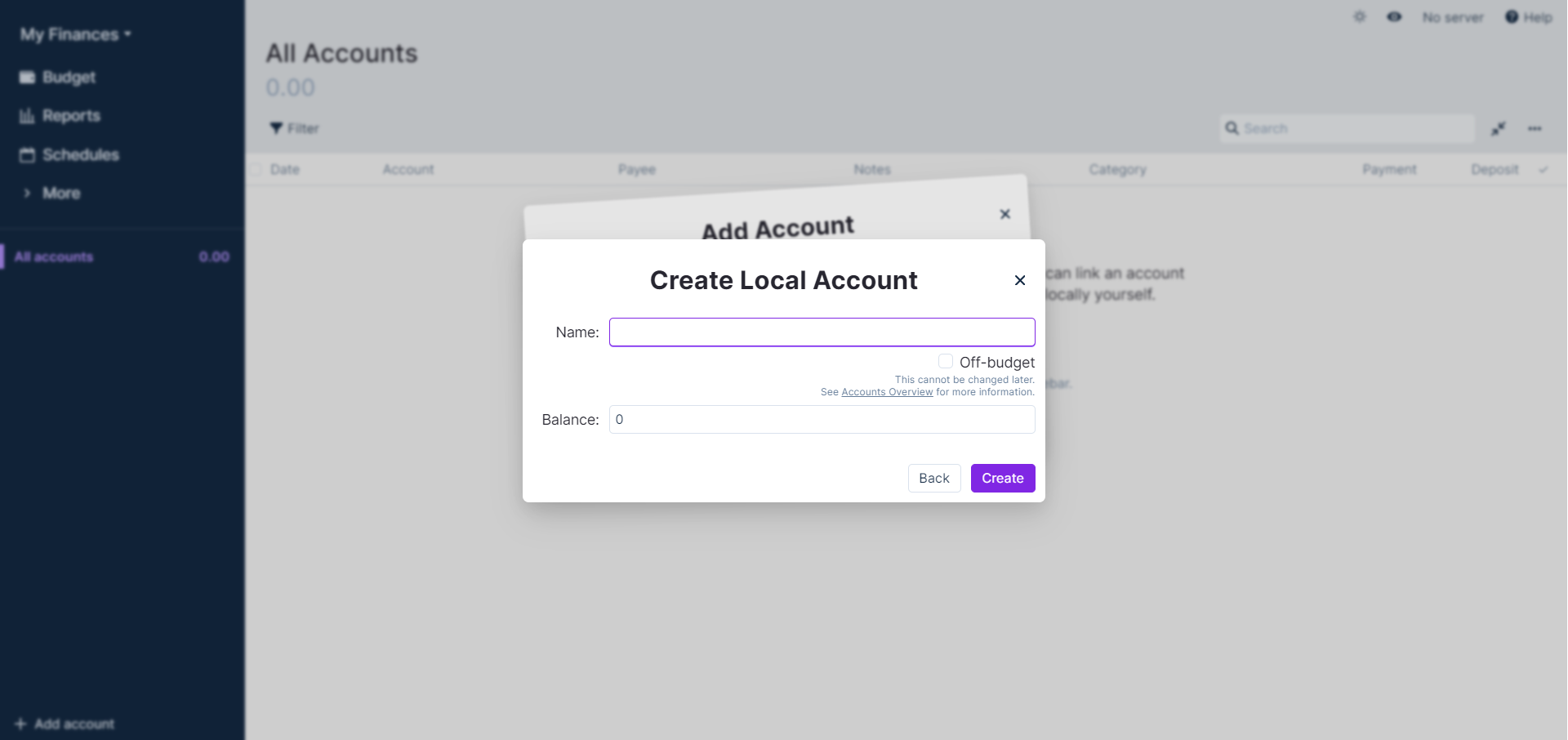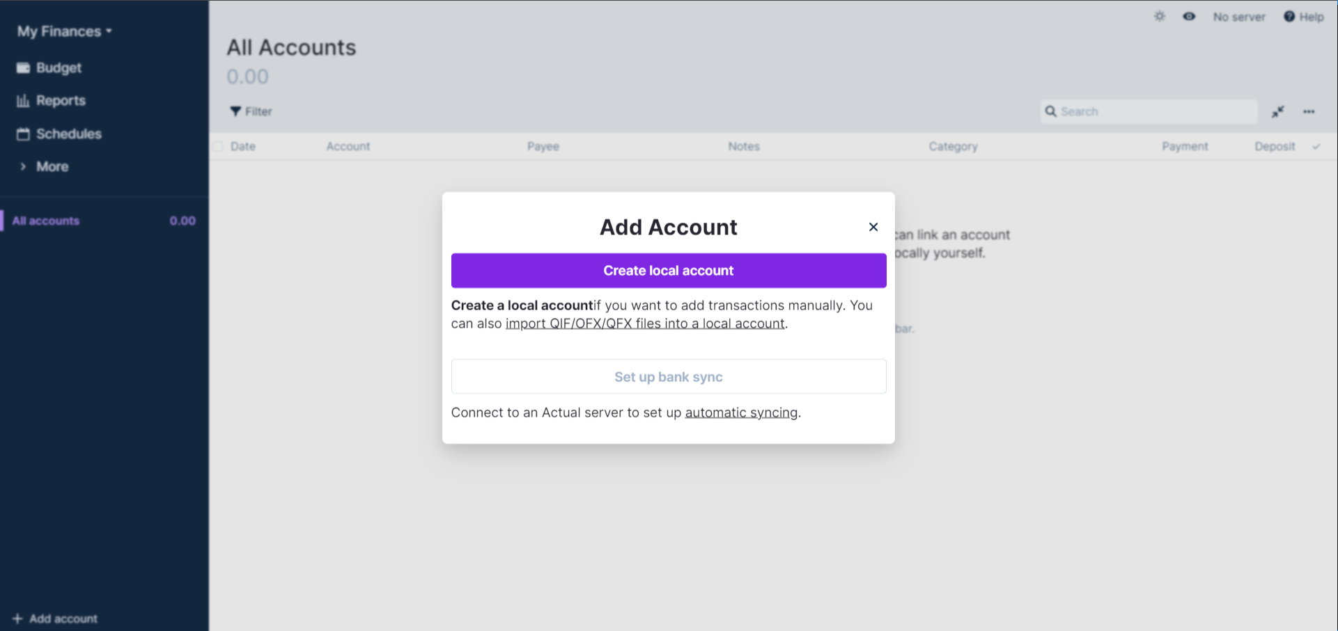 - Create a Local Account or Link to a supported bank syncing provider (See Connecting Your Bank)