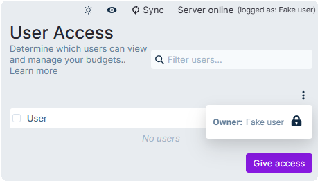 This screen is where you assign, give and revoke budget access and transfer ownership: