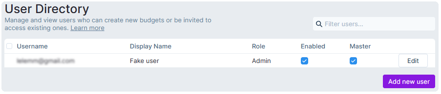The Admin role: This role can do everything the Basic user role can. It can also add new users to the user directory and allow all users to access budget files. The role can assign ownership of a budget to another person, ensuring efficient budget management.