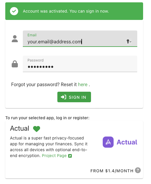 Before you can start using Actual, you need to set a password for your server. This password is used next time you log into your server - and should never be the same as your PikaPods account password.